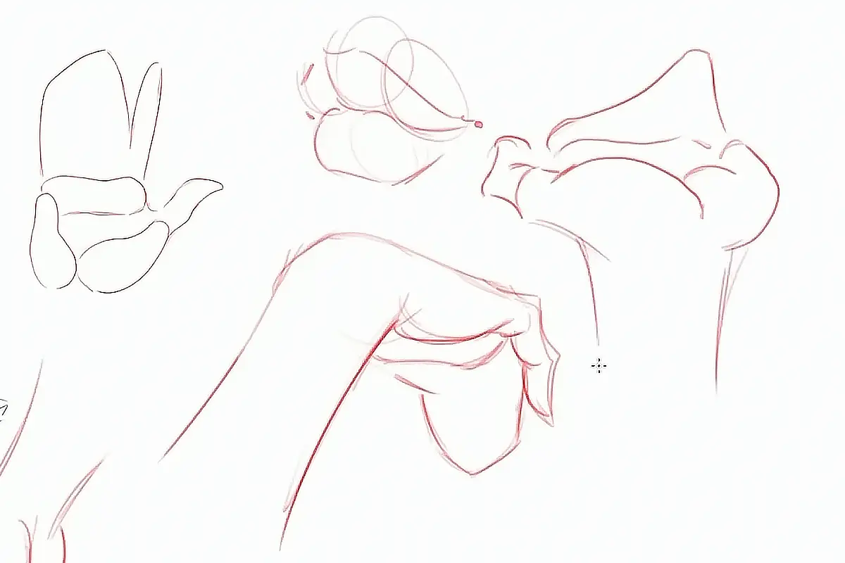 Essa técnica é essencial para desenhar mãos relaxadas, penduradas ou qualquer pose em que os dedos não estejam perfeitamente retos.