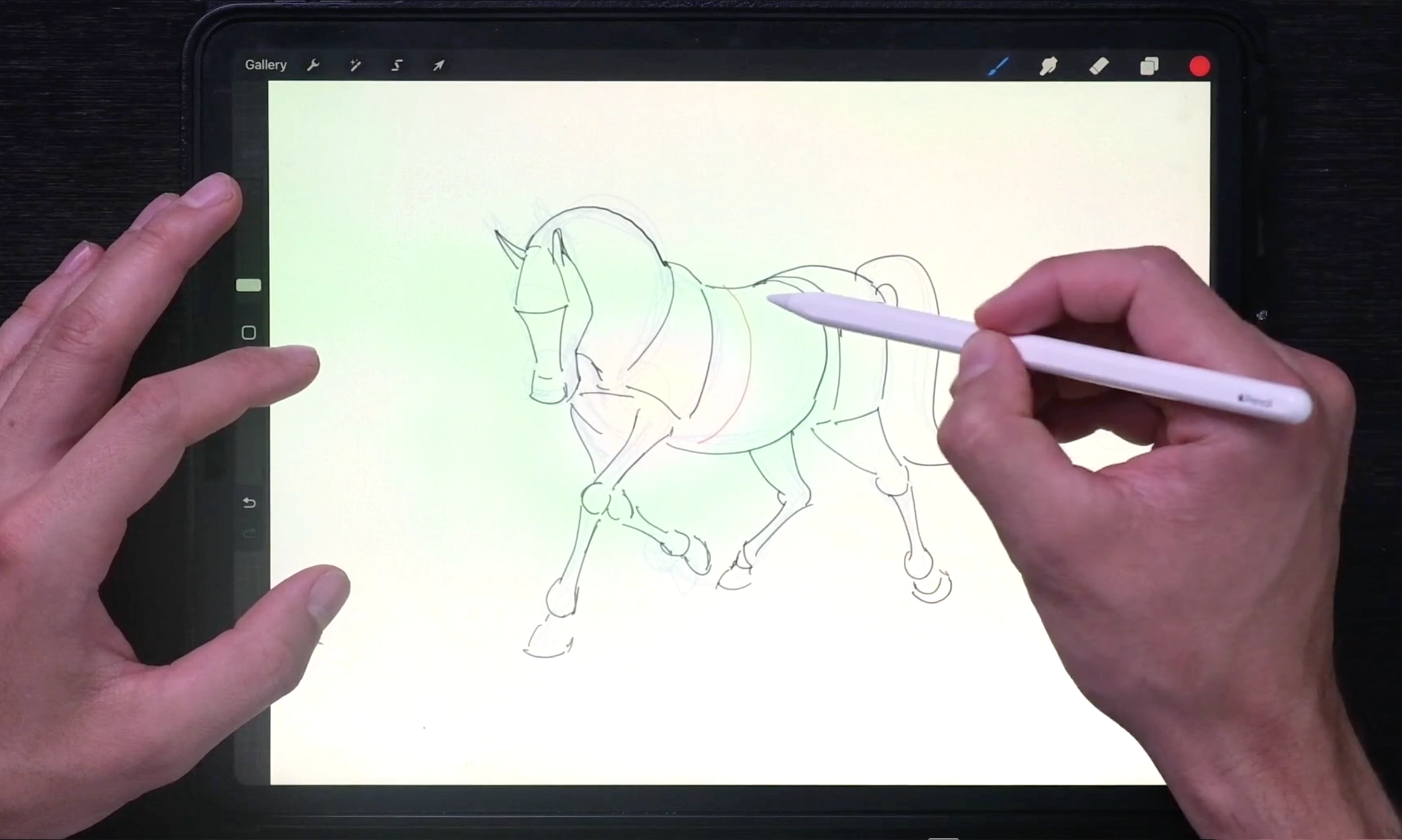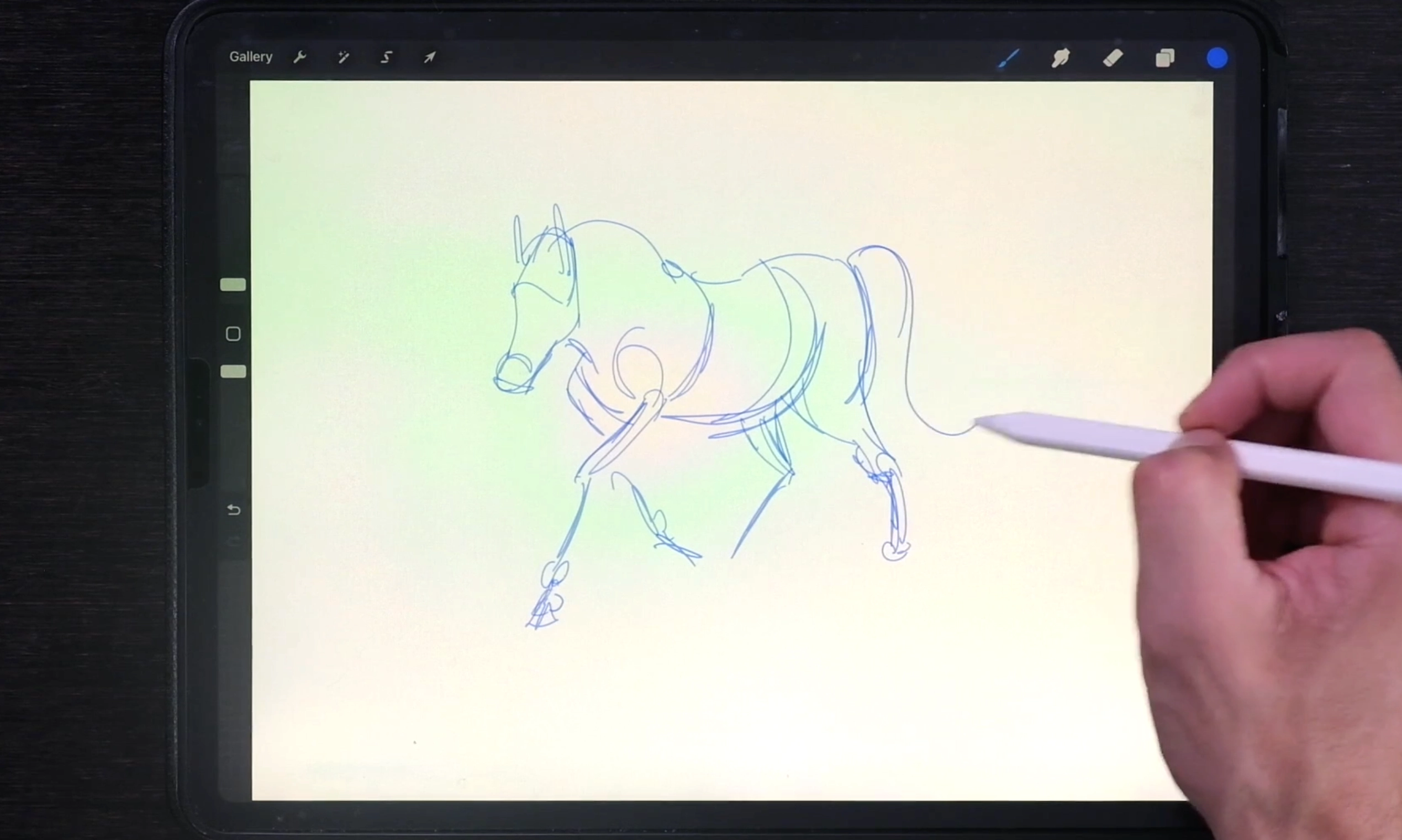 Isso servirá de base para seu desenho. Ele o informará sobre a perspectiva do cavalo, as formas e o movimento.