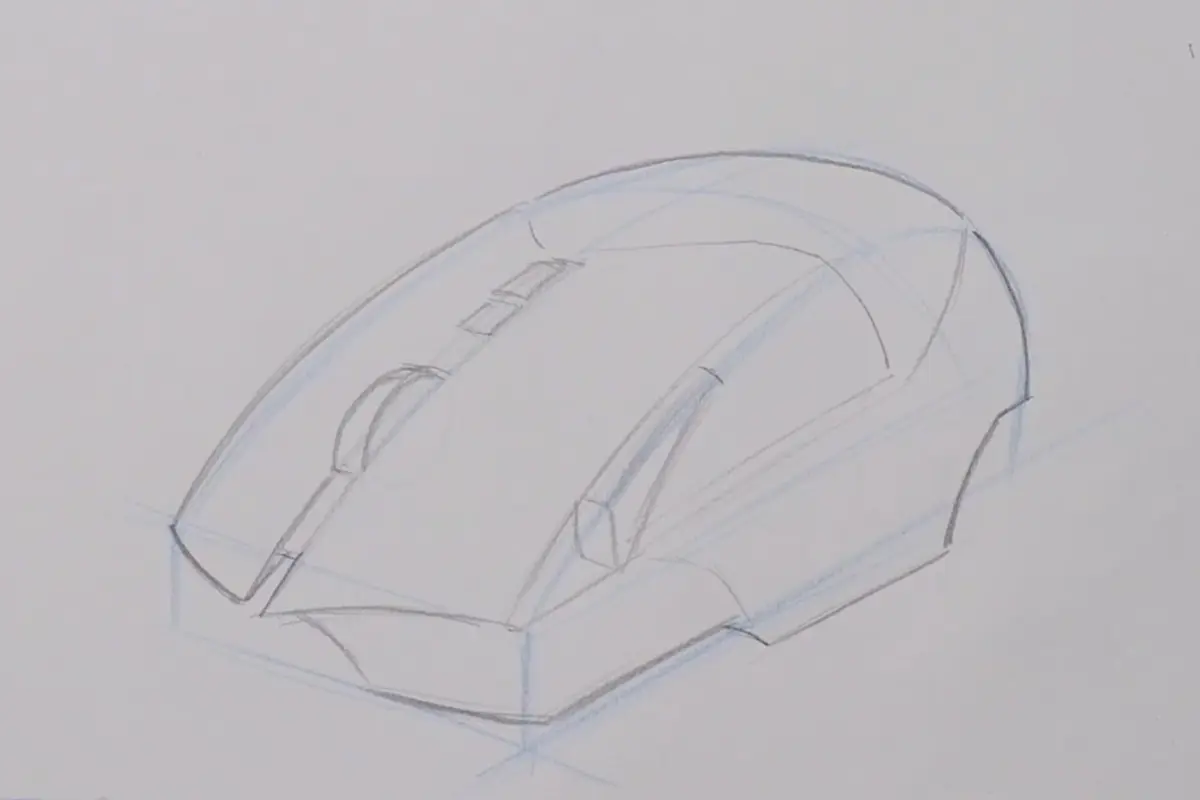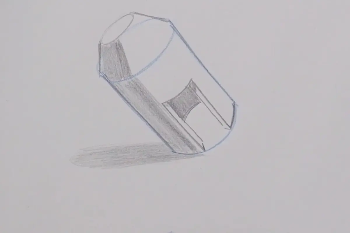 Ignore os detalhes no começo. Apenas desenhe a forma básica manipulada que contém todo o objeto (pode ser uma caixa comprimida com alça ou um cilindro com uma ponta).